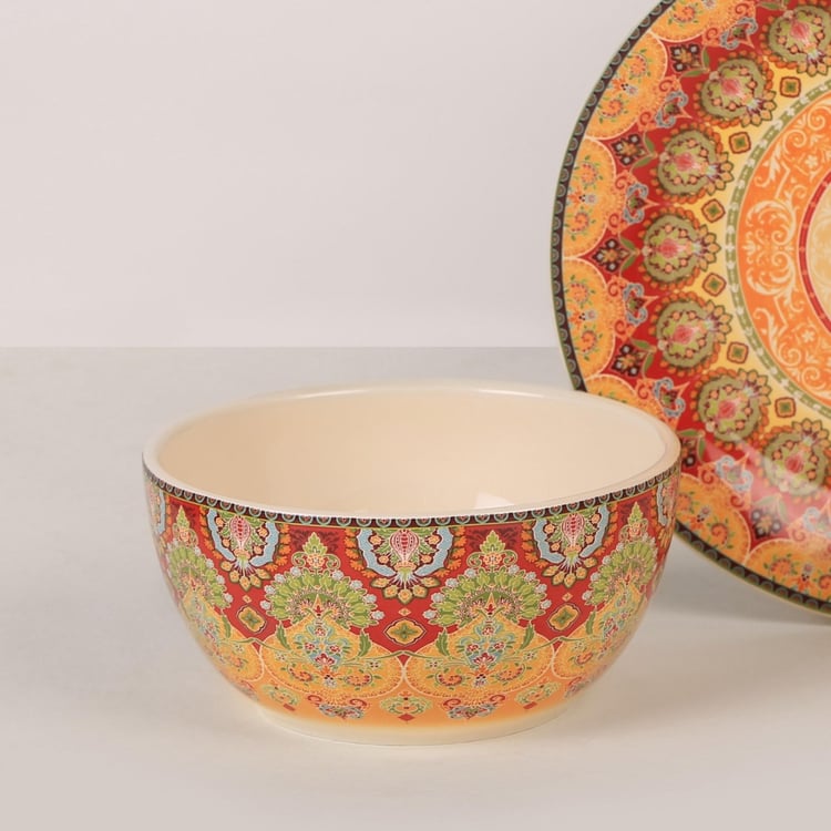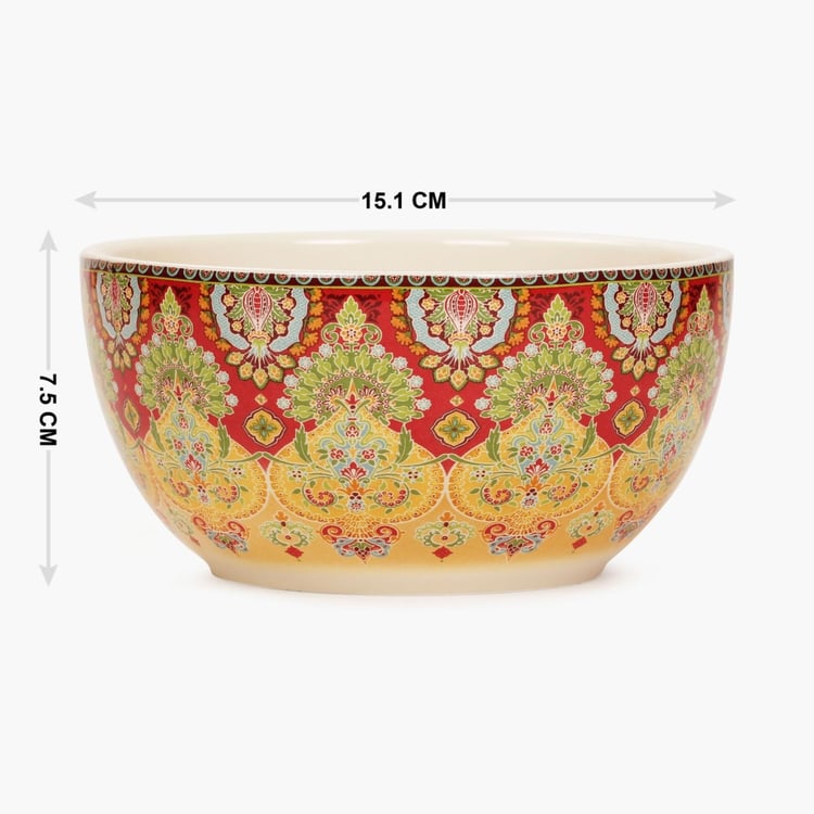 Embossed with a penchant print and composed of ceramic, this Rice Bowl makes for a fine addition to your crockery array.