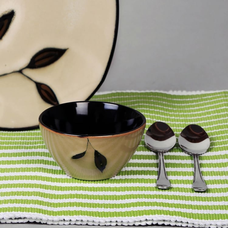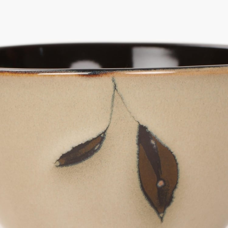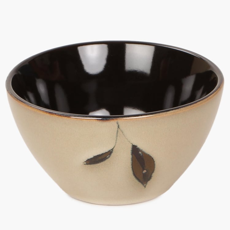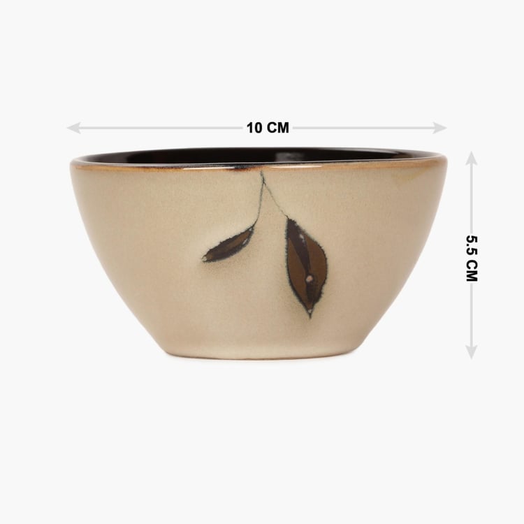 Petunia Printed Serving Bowl -Stoneware Bowl - 10 cm L x 5.5 cm H - Microwave Compatible - Beige