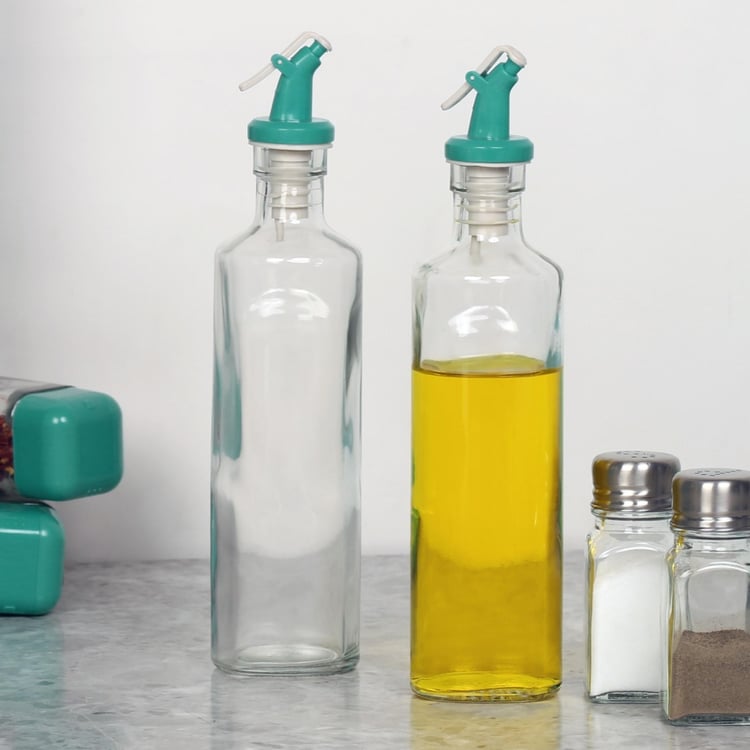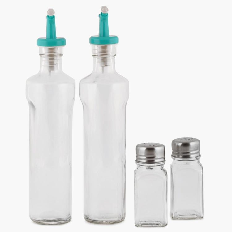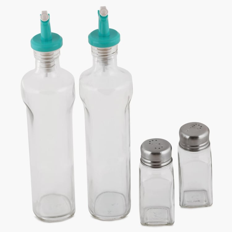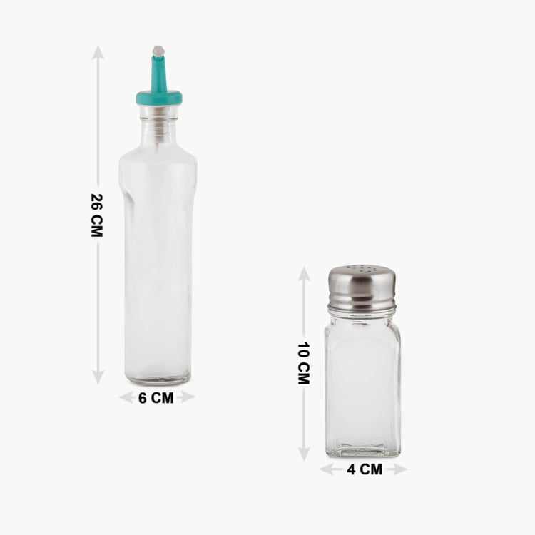 Paired to perfection this set commands its place in every stylish and clean-looking kitchen. The clear glass bottles make the contents easily identifiable!