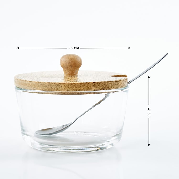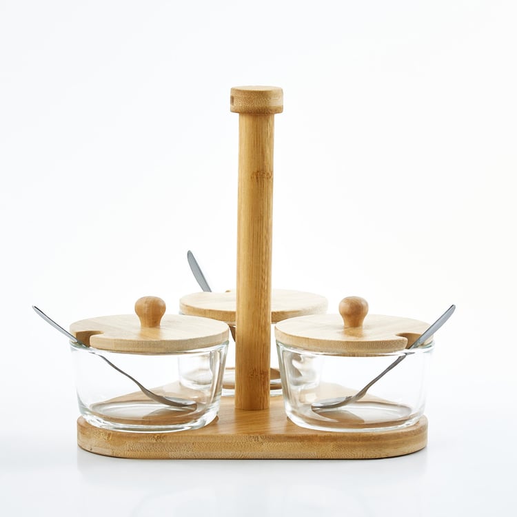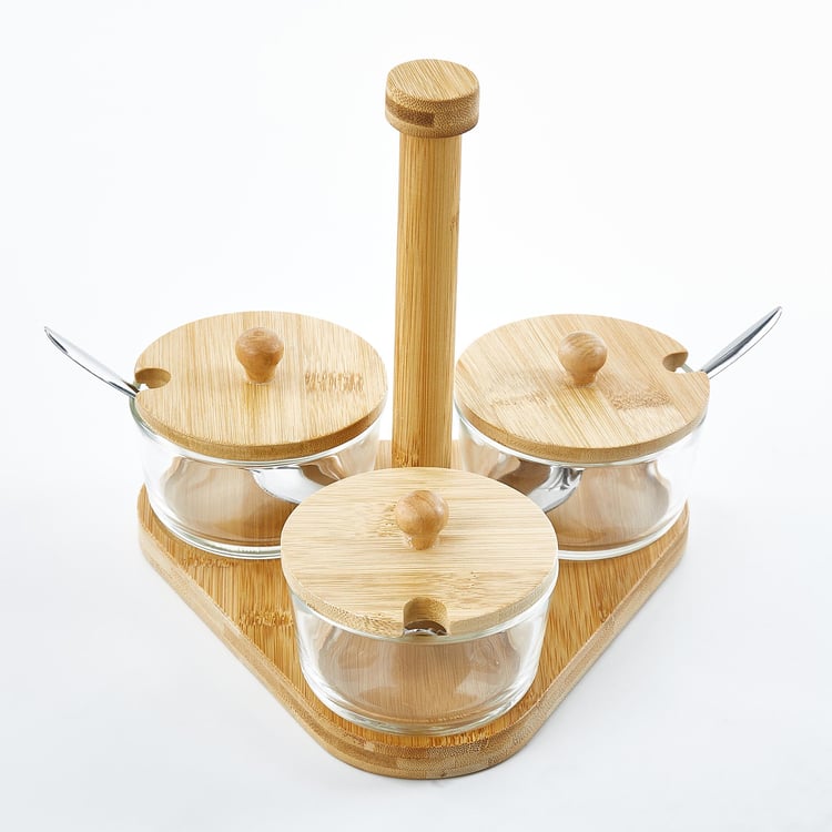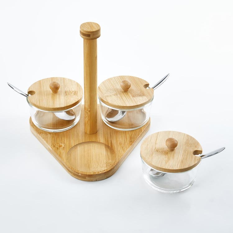 Vamos Istana Set of 3 Glass Condiment Set with Bamboo Stand