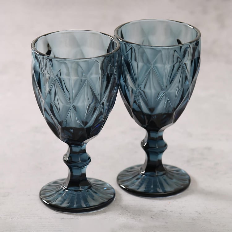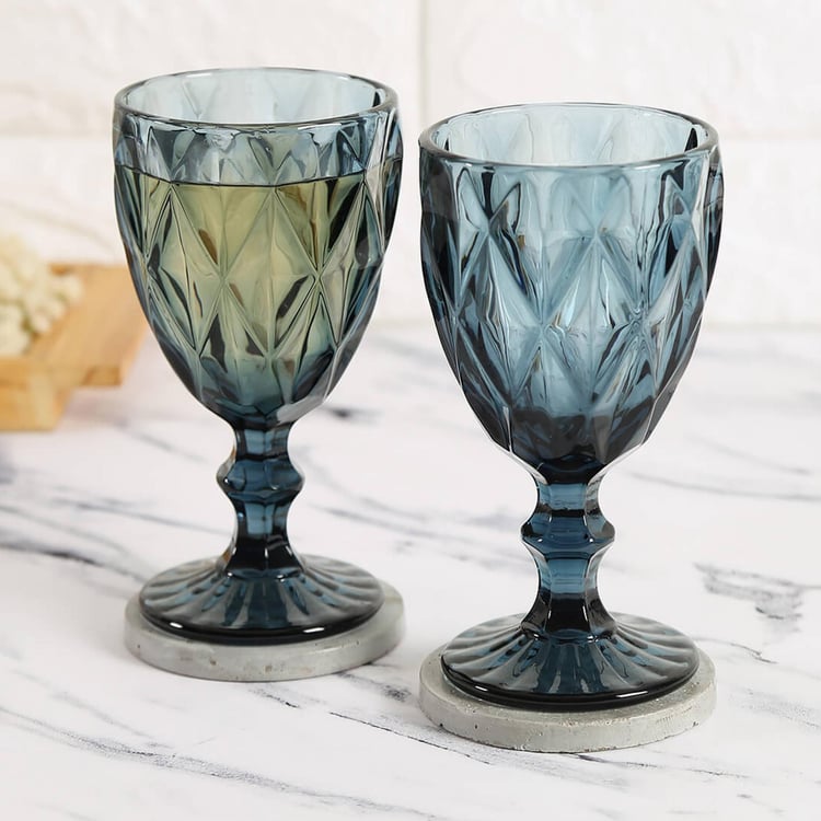 Add this pair of wine glasses to your home bar to add elegance. Crafted from, crystal glass, it features diamond-embossed detailing with etchings on the stem that elevate your dining experience. The wide bowl allows the aromas and flavours of the wine to combine and emerge beautifully. This set can be used for drinking red or white wine.