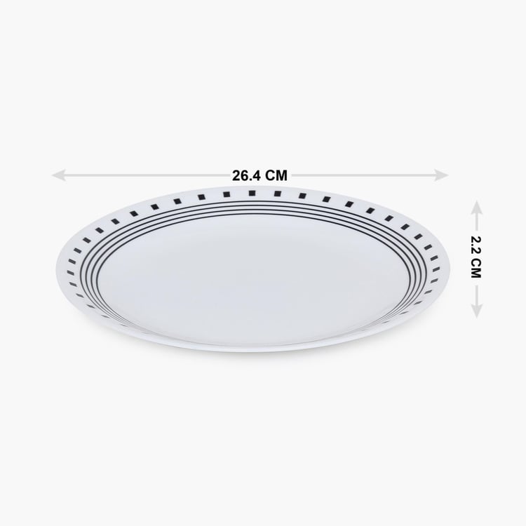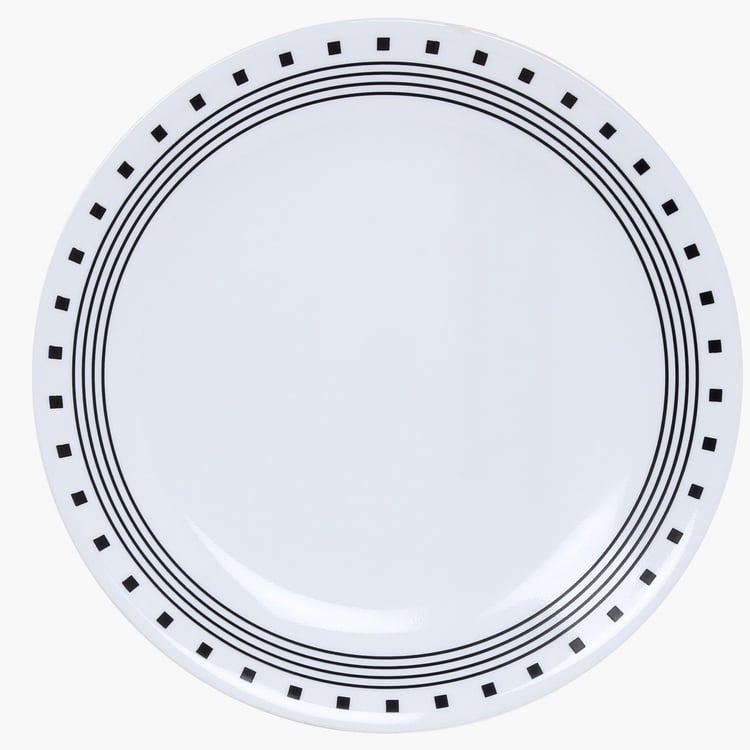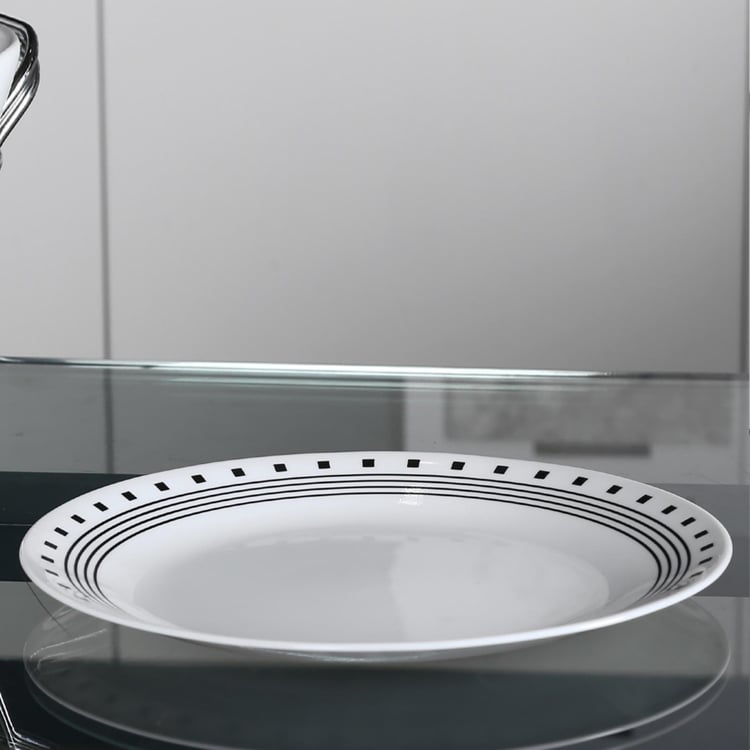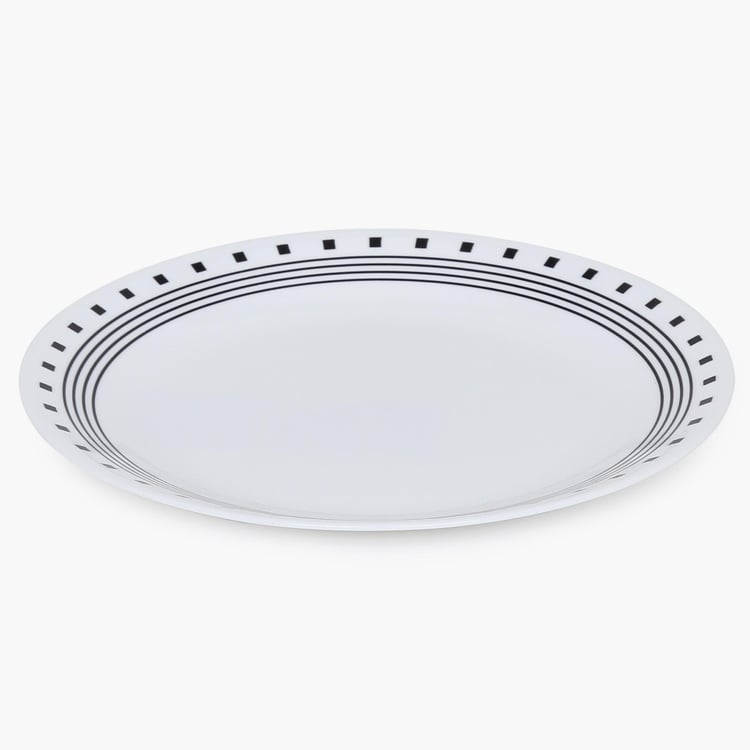 Make everyday dining a fancy yet crisp affair with this Dinner Plate. Crafted sleekly from ceramic, it features a minimalistic print and makes for a timeless dining addition.