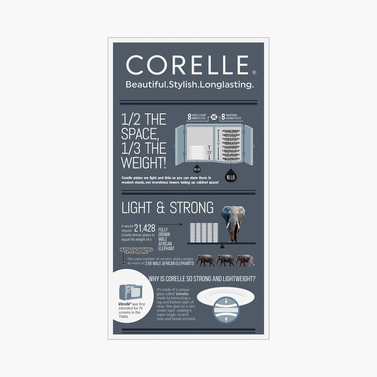 CORELLE Livingware White Printed Vitrella Glass Medium Plate