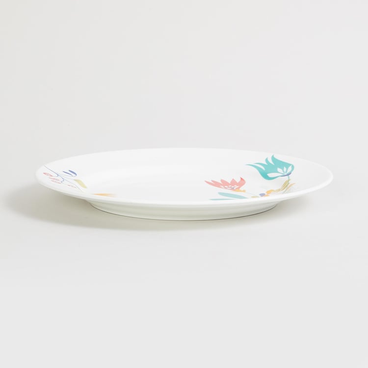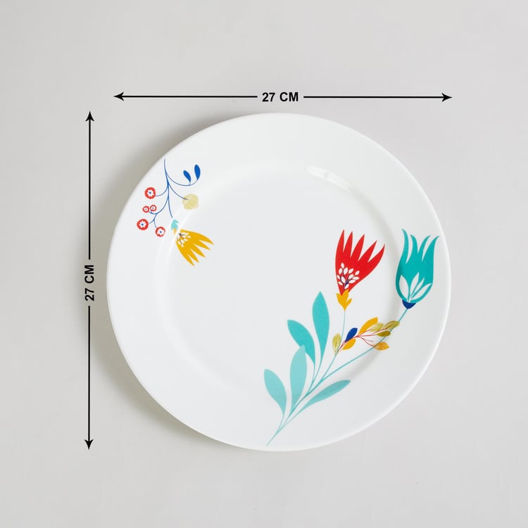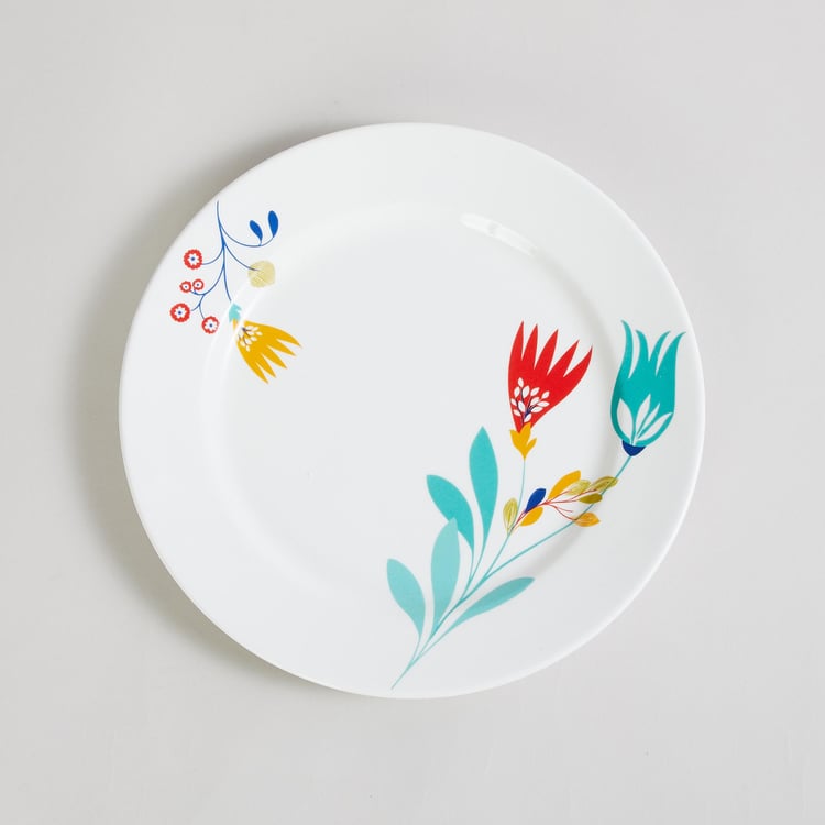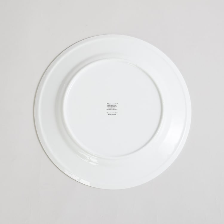 Mandarin-Bohemian Rhapsody White Floral Printed Bone China Round Dinner Plate - 27cm