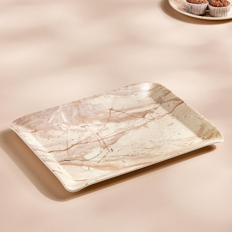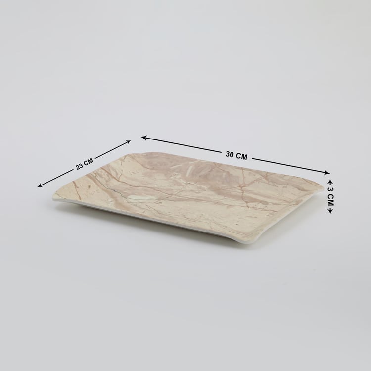 Create an aesthetic experience for your guests while serving them with this tray. It is crafted from sturdy material like melamine and has a printed surface. It is 100% food grade and BPA free.