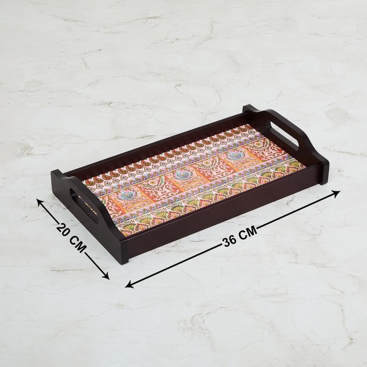 Maris Helina Multicolour Printed Wood Small Serving Tray - 36 cm L x 20 cm W