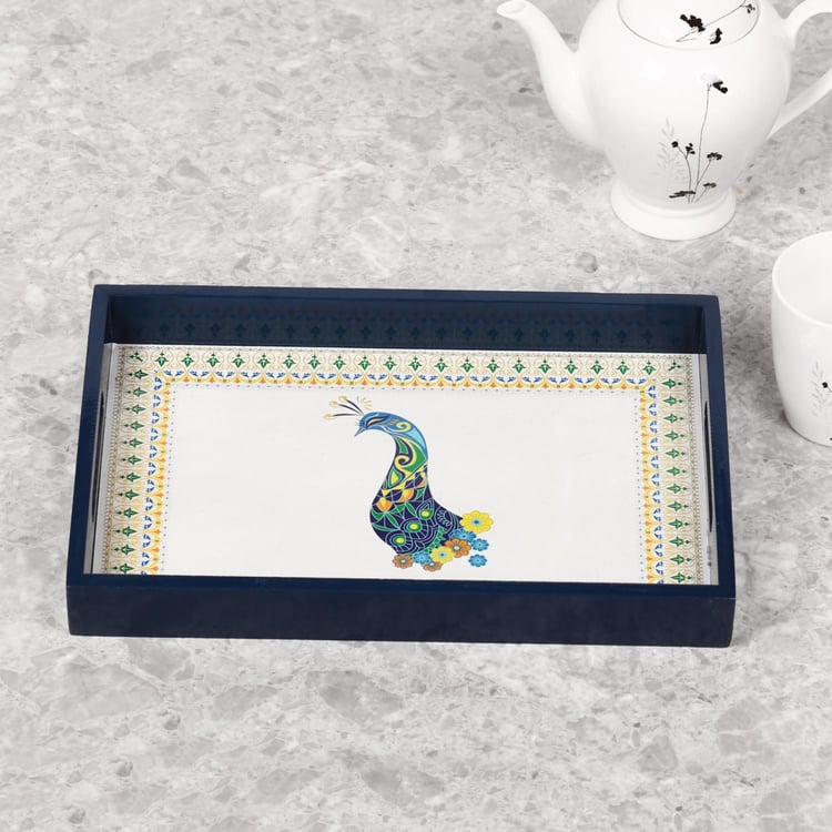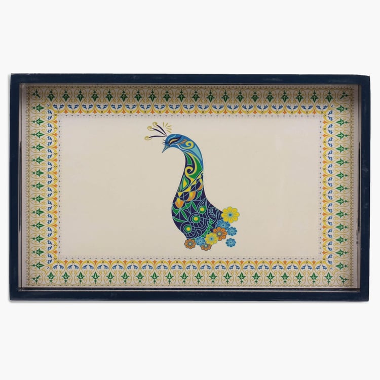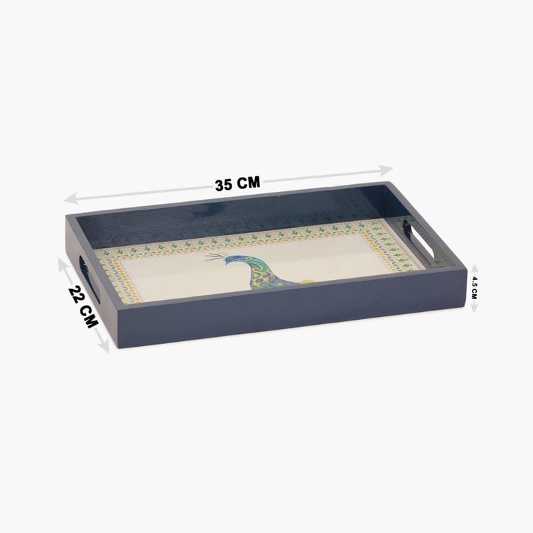 Introducing a beautifully embossed Tray which is crafted from MDF into a shallow dish structure. Equipped with raised walls, it prevents dishes from falling down and also pleases one aesthetically!