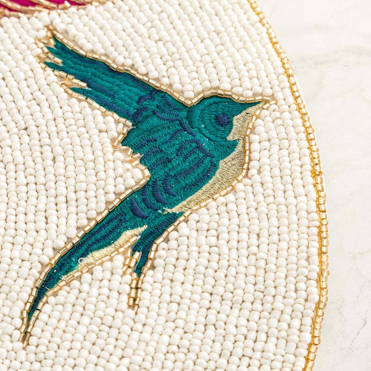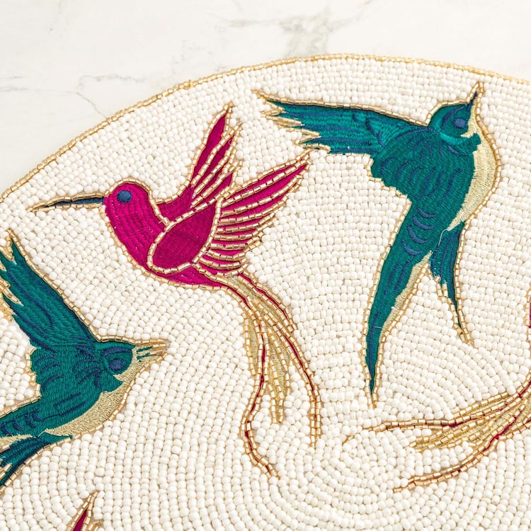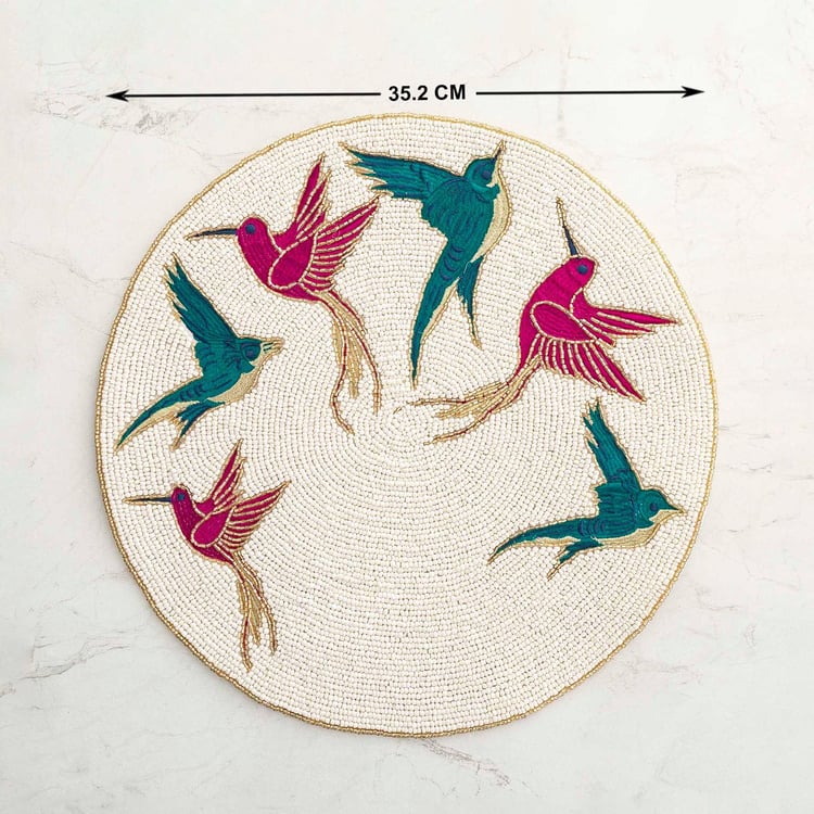 Hope Off White Printed Glass Beaded Placemat- 35.2 cm