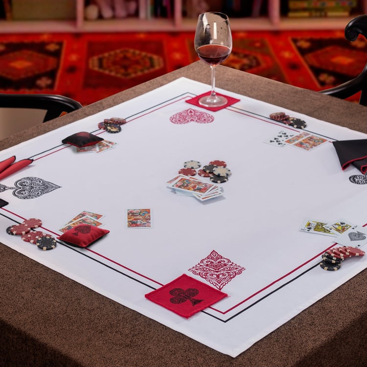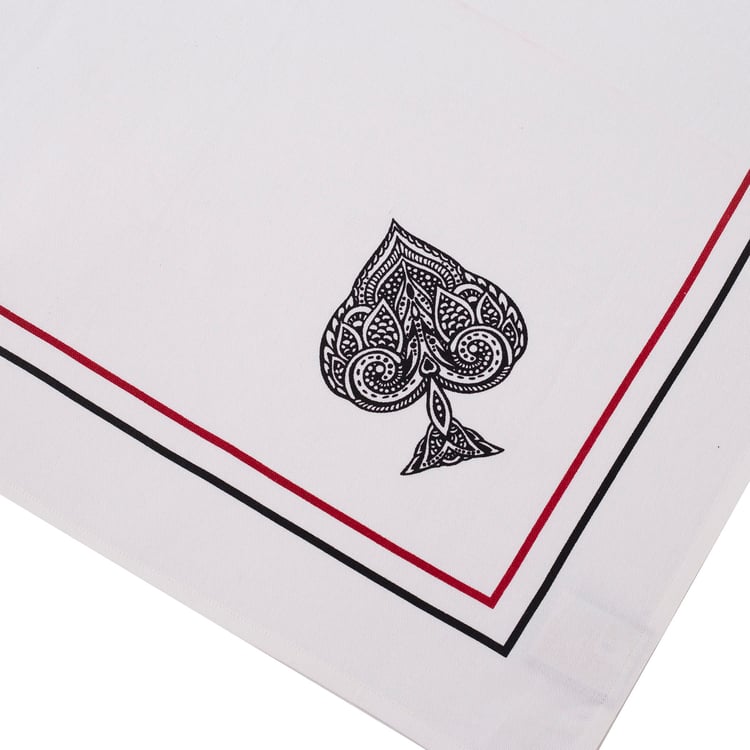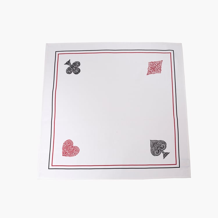 Add a charming decorative accent to your dining setup with this table topper. Made from cotton fabric, it offers a soft feel with durability suitable for regular use. Featuring four suit-inspired prints in a square shape, this table topper brings a playful yet stylish touch to your tables.