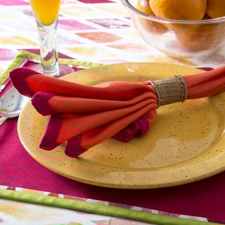 Refresh your dining decor with modern elegance using this 8-seater table cover, designed to create a clean and stylish table setting. Made from cotton fabric, it offers a soft feel with durability suitable for everyday use. Featuring a geometric print with contrast trim detailing, this table cover adds a decorative touch to dining tables.