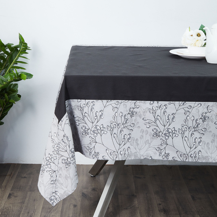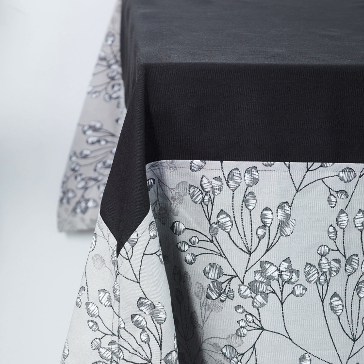 Mandarin Floral Table Cloth - Cotton - Table Cloth - 150 cm L x 200 cm W - Black
