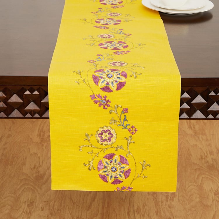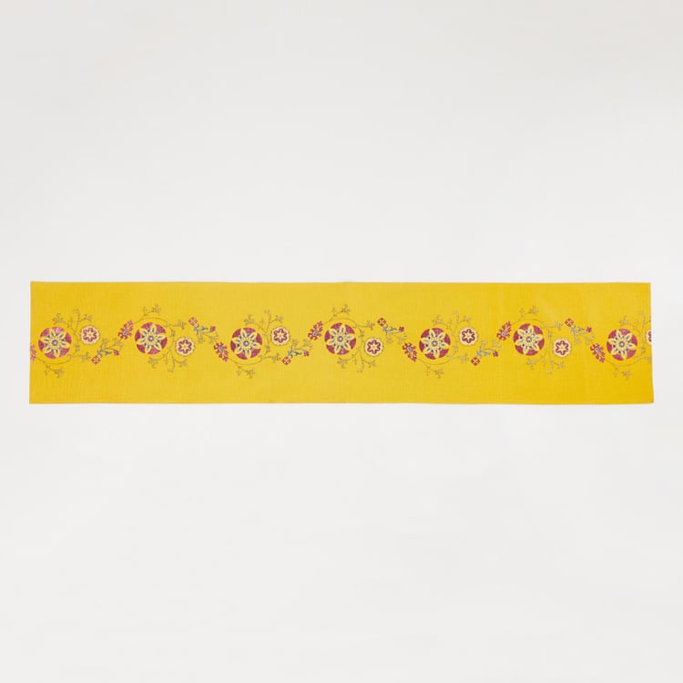 Make your dining room a favourite by layering with this table runner. Tailored from a soft fabric and rendered with bold floral prints, this one lends a stunning look.