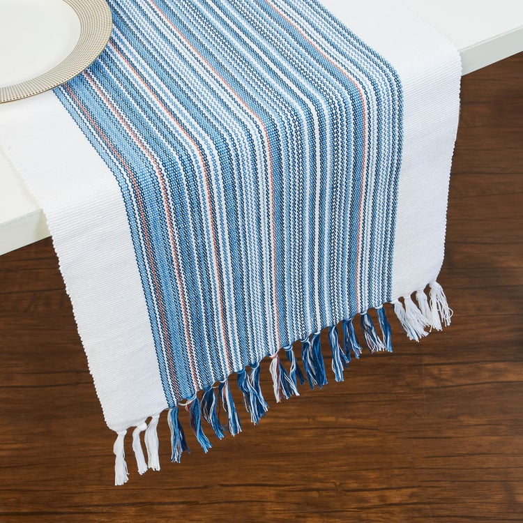 Medora Red Stripes Woven Ribbed Cotton Table Runner - 33x180cm