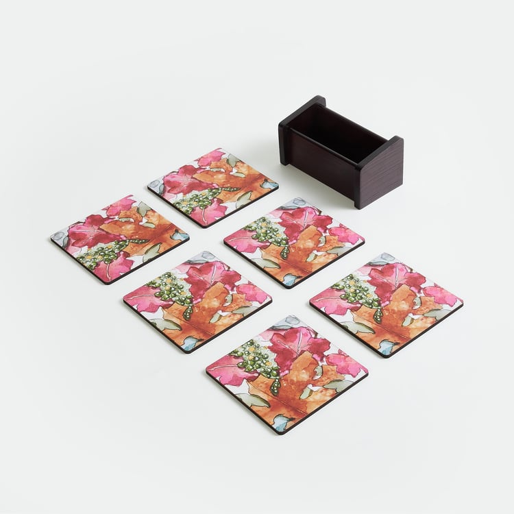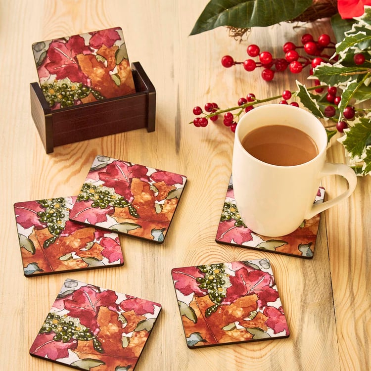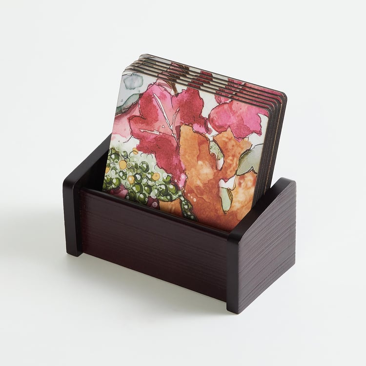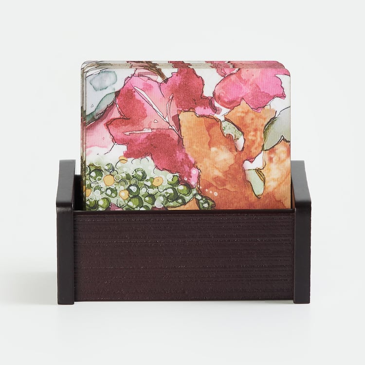 Pair your favourite beverage with this cutesy set of floral printed coasters that are made of MDF prevents odour residue and keep your table looking fresh. These are accompanied by a stand for convenience.