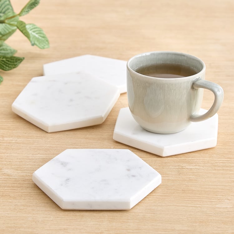 Protect your surfaces with these coasters. Crafted from durable, non-porous marble, they resist stains and moisture while adding a sleek and elegant touch to your table setting.