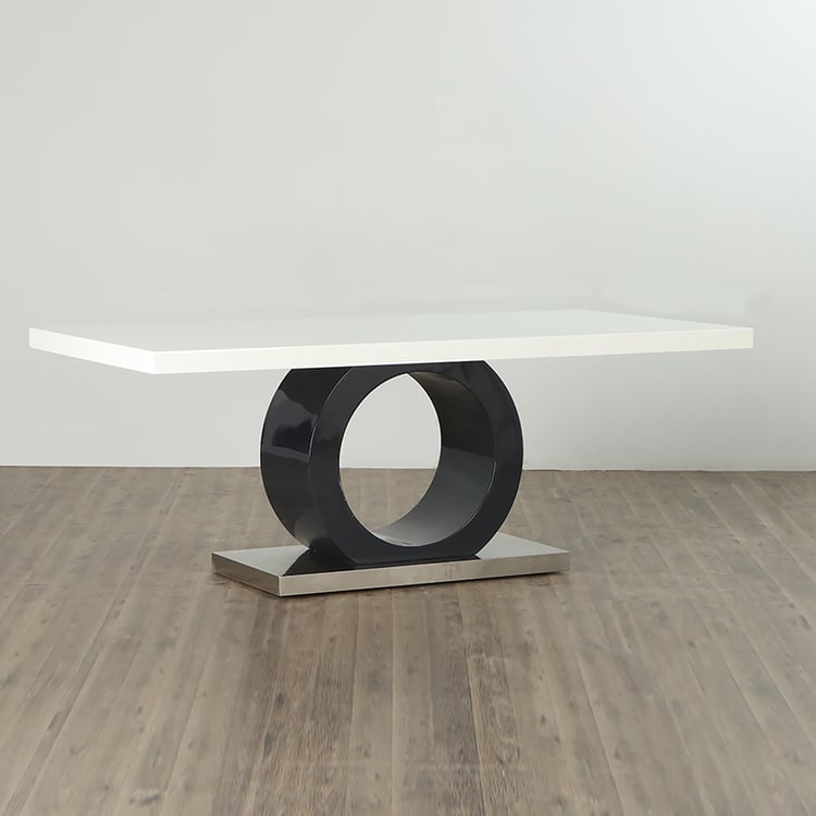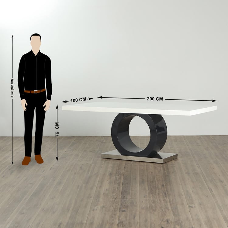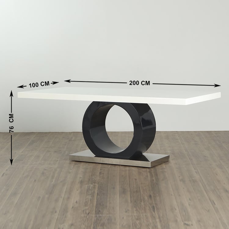 Bring a pop of streamlined, contemporary style to your dining space with this clean-lined dining table. Crafted with engineered wood and laminate veneers in a gloss finish, this table strikes a sleek, rectangular silhouette with a slender edge. Rounding out the design, its base includes a pedestal base. This table has a casual feel that pairs well with eclectic chairs. Gather around this table with family and friends over a delicious home-cooked meal, this dining table comfortably seats six guests.