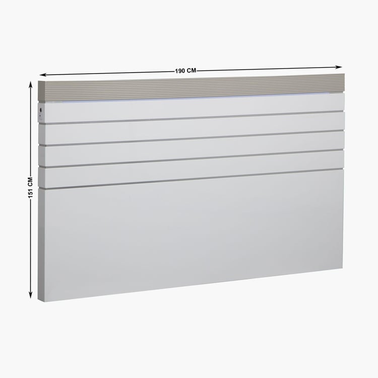 A solid king size headboard that is complemented with a sleek design and led lightings. Made from compressed wood, this one adds a glossy look to your bedding space.