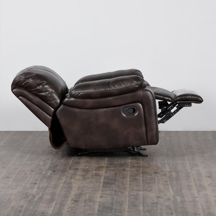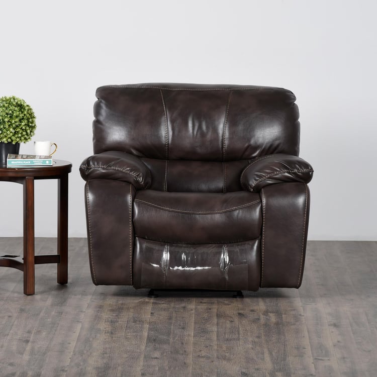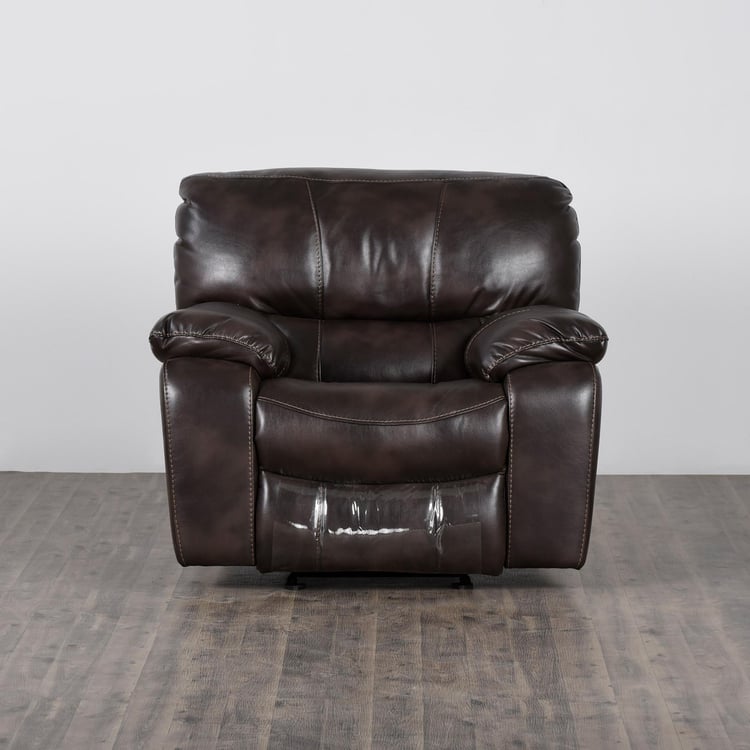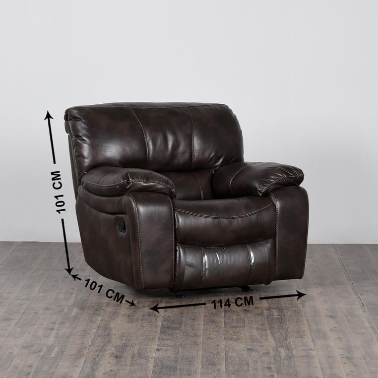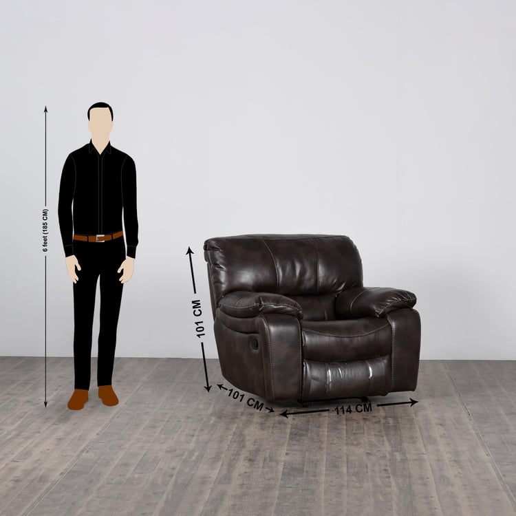 Uplift the look of your living room and add a touch of comfort and style with this one-seater recliner. Crafted using pinewood, it is upholstered in Nappa Air which is man-made with high tensile strength and easy cleanability and a softer finish. It is also much more affordable than real leather and lasts longer as well. It features a high back along with high-quality resilient foam as well for comfortable seating along with a backrest that has high elastic nylon webbing for greater support and comfort. It also has a fixed bucket-shaped seat and offers perfect lumbar support.