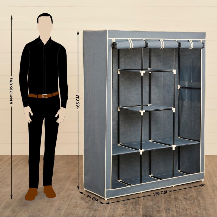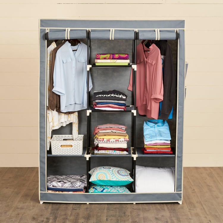 Helios Yeti Fabric 3-Door Collapsible Wardrobe - Grey
