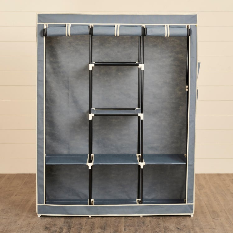 A sleek addition to your storage option, this collapsible wardrobe is perfect for days when you have extra clothes to store. Don't need it for the time being? Just collapse it and store it in a safe place to save space at home. Ideal for arranging clothes on the fabric rack of holding capacity 8-10 kg per rack. Portable and Lightweight. Powder Coated Steel Tube with ABS Connector Easy Assembly and No Tools required. Dust and Moisture-Resistant Fabric. Recommended for hand wash only with lukewarm water and mild detergent. Primary Material : Metal Tube with ABS Connector