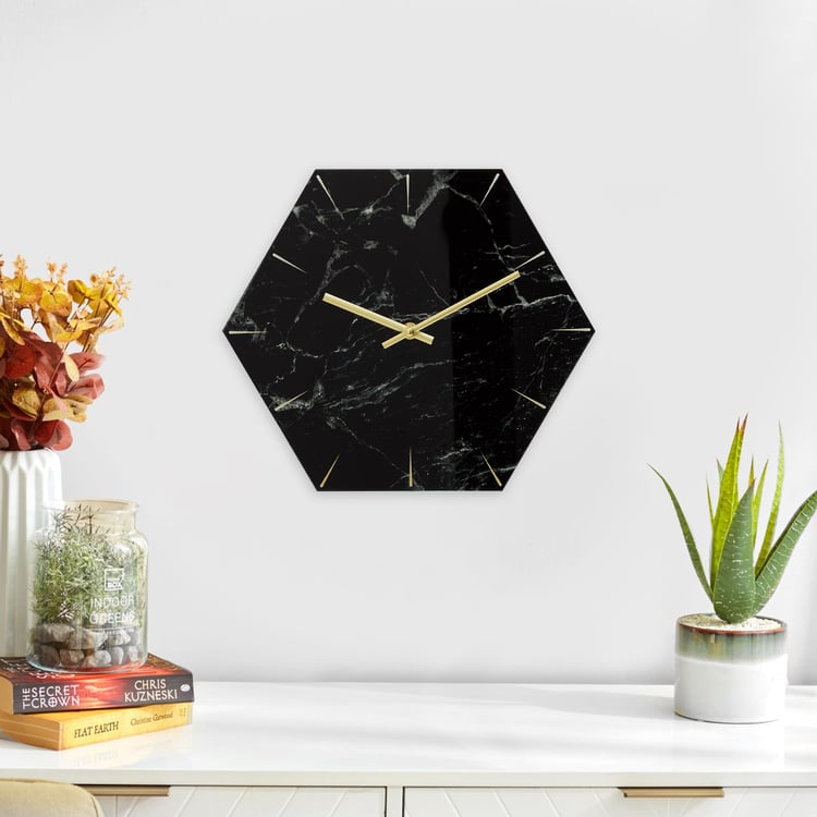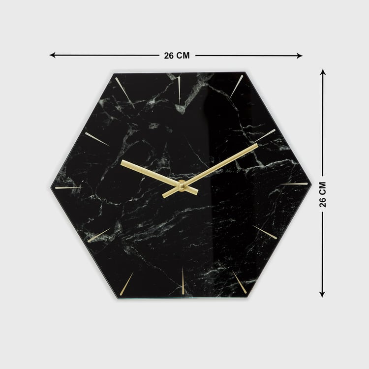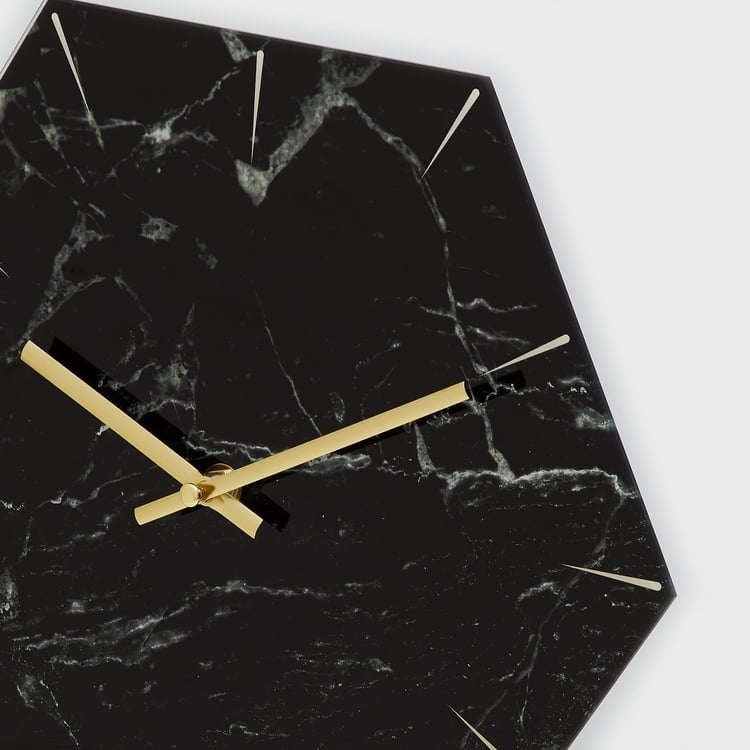 Enhance the look of your space by adding this wall clock. Designed in a hexagonal shape, it features needle hour markers and is covered with glass.