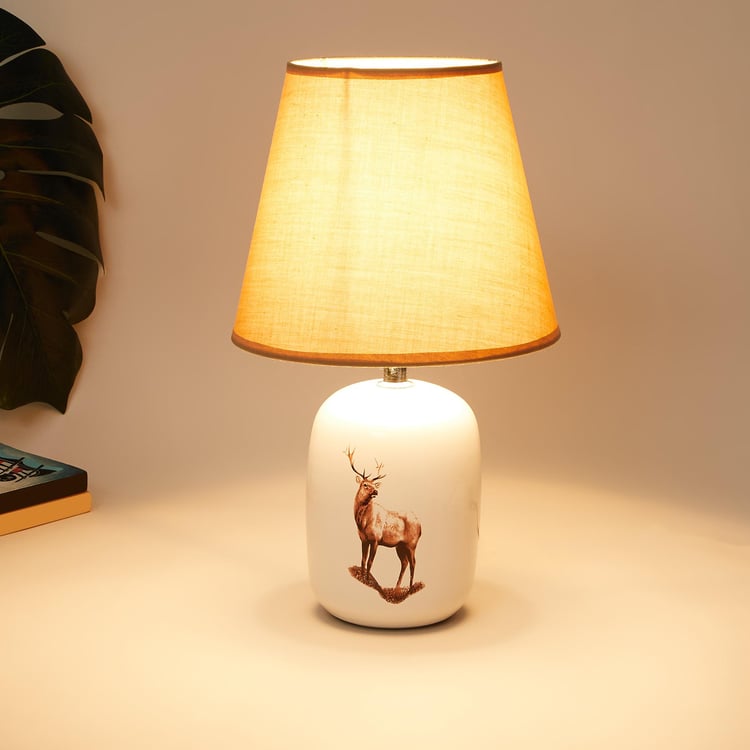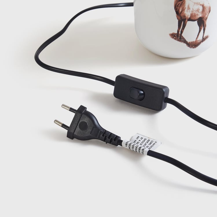 Enhanced with a deer printed design, this table lamp is a staple update to your decor collection. It comes with an electric cord for ease of use.